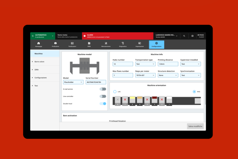 Sacmi. Il nuovo design system delle HMI di Sacmi consiste nella progettazione di soluzioni incentrate sull’esperienza utente e sull’usabilità dei sistemi all’interno del contesto industriale. Una volta stabilite le diverse criticità, è stata svolta una ricerca approfondita per individuare soluzioni già presenti nel mercato delle HMI nell’ottica di poter trasferire i punti di forza emersi all’interno della nuova interfaccia.
