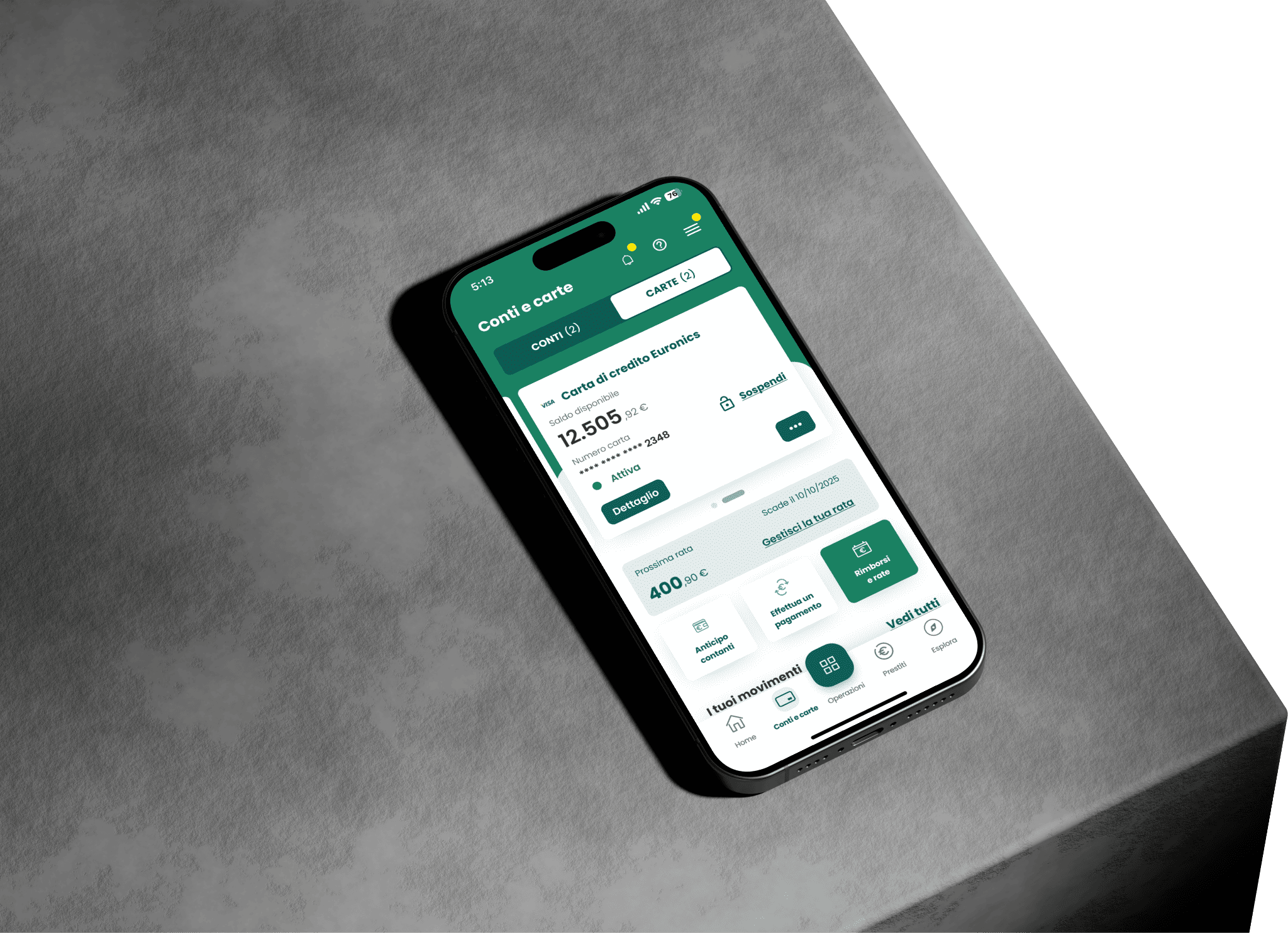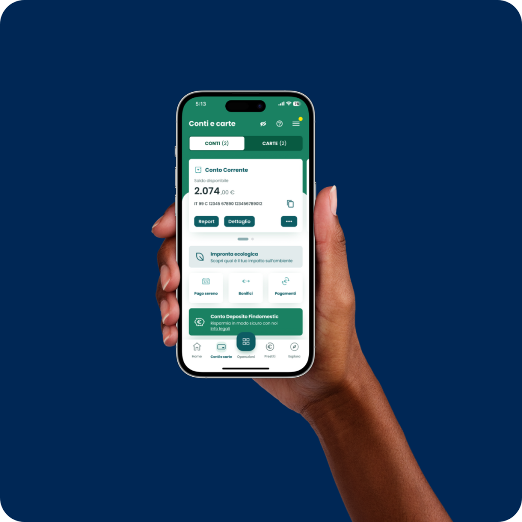 Dal conto corrente come strumento conoscitivo dell’utente, all’attivazione sui prodotti core finanziari, come prestiti e carte di credito: l’app Findomestic è un hub di servizi a 360° per la finanza personale.