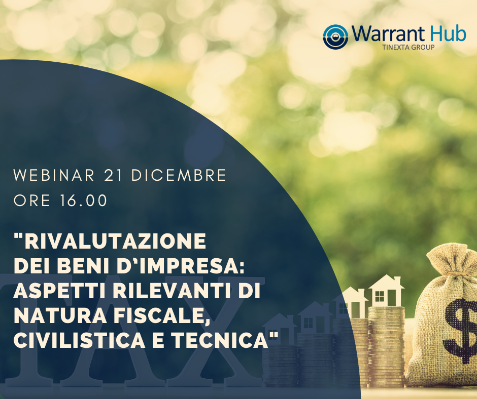 WebinarRivalutazione dei beni d’impresa: aspetti rilevanti di natura fiscale, civilistica e tecnica21 Dic 2020 (15:00)21 Dic 2020 (17:00)