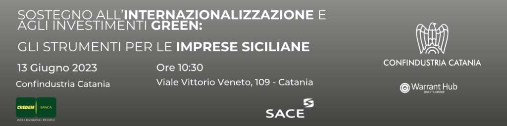 EventoSostegno all’internazionalizzazione e agli investimenti green: gli strumenti per le imprese siciliane13 Giu 2023 (08:30)13 Giu 2023 (11:00)