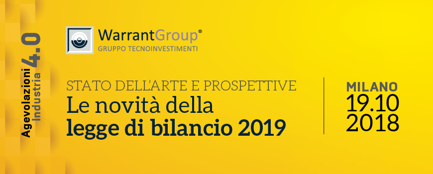 EventoAgevolazioni Industria 4.0 – Stato dell’arte e prospettive. Le novità della legge di bilancio 201919 Ott 2018 (07:00)19 Ott 2018 (07:00)