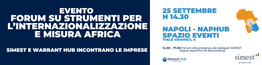EventoForum su strumenti per l’internazionalizzazione e misura africa25 Set 2024 (12:30)25 Set 2024 (15:00)