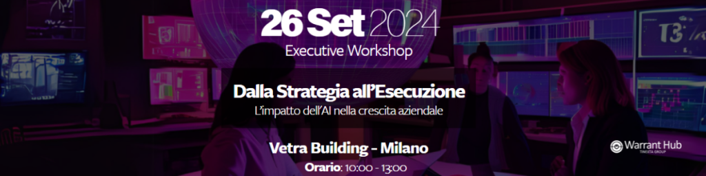 WorkshopDalla strategia all’esecuzione: l’impatto dell’AI sulla crescita aziendale26 Set 2024 (08:00)26 Set 2024 (11:00)
