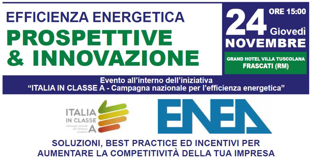 EventoEFFICIENZA ENERGETICA: PROSPETTIVE & INNOVAZIONE – Soluzioni, Best Practice ed Incentivi per aumentare la competitività della tua impresa18 Nov 2016 (13:00)18 Nov 2016 (13:00)