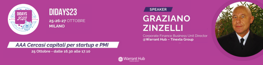 EventoDigital Innovation Days 2023 – Panel: AAA Cercasi capitali per startup e PMI25 Ott 2023 (14:30)25 Ott 2023 (15:10)