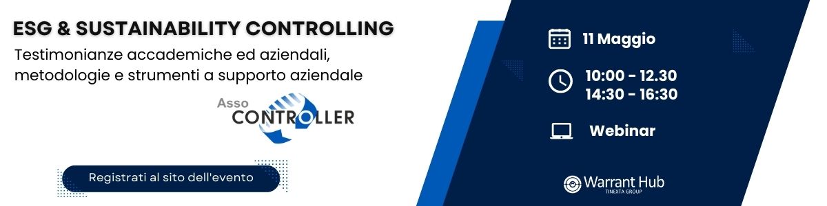 Attraverso testimonianze accademiche ed aziendali, analizzeremo gli step progressivi di implementazione effettiva della progettualità ESG, con l’obiettivo di fornire dei punti di riferimento facilmente fruibili e riconoscibili dal mercato. Il tema dello sviluppo sostenibile , pone le competenze del controller al centro del processo di integrazione tra valore finanziario tradizionale ed immateriale ed indirizza, insieme alle altre figure professionali coinvolte, la transizione verso la nuova creazione di valore nell’Economia condivisa. Parteciperemo con Paolo Neri, Direttore di Area Warrant Garden , in qualità di relatore nell’intervento “Misurare la sostenibilità – La necessità di comunicare informazione consistenti nella metodologia e nei dati per la creazione di valori attraverso la sostenibilità” previsto per le ore 15.20. Agenda Mattina 10.00 | Apertura Evento Assocontroller – Ugo Chiesa, Project Leader GDR ESG Assocontroller 10.10 | Open-es, un’alleanza di sistema per la governance ESG delle filiere – Stefano Fasani, Open-es Program Manager 10.30 | ESG and Sustainability: dalla compliance, alla creazione di valore attraverso i dati – Moviri, IBM – Massimiliano Bolondi, ESG & Sustainability Sales, Moviri, Felice Petrignano, Senior Partner Technical Specialist Sustainability, Sustainability, IBM 10.50 | ESG Data Platform: una gestione strategica dei dati a supporto del bilancio di sostenibilità -lconsulting – Francesco Gessoni – Senior Manager lconsulting 11.10 | Dal controllo di gestione al reporting di sostenibilità – Stillab – Geraldine Adriana Torres Valero, Geophysical and Environmental Engineerin Stillab 10.40 | Intregare gli SDGs nella misurazione della performance – OIBR Organismo Italiano Business Reporting – Lino Cinquini, Presidente, Comitato Scientifico, Fondazione OIBR, Maria Serena Chiucchi, Professore Ordinario Economia Aziendale 12.00 | ITALO | Il viaggio della sostenibilità, Francesca Fabbri, Head of Administration Accounting and Tax Italo 12.20 | OIBR, Organismo Italiano Business Reporting, Stefano Zambon, Segretario Generale, Fondazione OIBR, Ordinario di Economia Aziendale, Universtità di Ferrara Pomeriggio 14.30 | Apertura pomeriggio Assocontroller, Giovanni Ciuchi, Tesoriere Assocontroller 14.40 | Il Fattore G: Indipendenza del CDA e interesse primario dell’azienda a servire il bene comune, Emiliano Di Carlo, Professore Ordinario Economia Aziendale, Università Tor Vergata 15.00 | In che modo una piattaforma tecnologica può supportare gli attori coinvolti all’interno del processo di sostenibilit? – CCH Tagetik, Kevin Milani Presales specialist presso CCH Tagetik 15.20 | Misurare la sostenibilità – La necessità di comunicare informazione consistenti nella metodologia e nei dati per la creazione di valori attraverso la sostenibilità – Warrant Hub (Tinexta Group), Paolo Neri Direttore di Area Warrant Garden 15.40 | Alllianz Investor Group – Testimonianza Aziendale 16.00 | Gruppo di Ricerca ESG Assocontroller, Matteo Dalla Pozza, Gruppo di Ricerca ESG Assocontroller 16.20 | Chiusura Evento, Ugo Chiesa, Project Leader GDR ESG Assocontroller