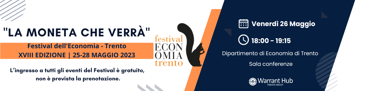 Dal 25 al 28 maggio si terrà a Trento la 18^ edizione del Festival dell’Economia dedicata al tema “IL FUTURO DEL FUTURO. Le sfide di un mondo nuovo” . La scelta è di dedicare le quattro giornate a riflettere sul futuro per analizzare le linee guida del cambiamento e le sfide del nuovo mondo di fronte alle guerre e ai cambiamenti della geopolitica, al rischio pandemie, all’emergenza energetica e climatica. A farlo saranno le menti più brillanti della scienza, opinion leader, esperti delle discipline più diverse, in dialogo con le personalità della politica, dell’economia e della società civile, alla ricerca di quella bussola che consentirà di trovare soluzioni adeguate. Tinexta Group , per il secondo anno consecutivo, supporta l’iniziativa e sarà rappresentata da Patrick Beriotto , Marketing and Communication Director di Warrant Hub, azienda di riferimento per la Business Unit Innovation, e da Danilo Cattaneo , CEO di Infocert e guida della Business Unit Digital Trust, oltre che dal suo presidente e fondatore, Enrico Salza che interverrà alla cerimonia inaugurale del 25 maggio. In particolare, Patrick Beriotto , Marketing and Communication Director , interverrà in qualità di relatore durante la tavola rotonda dal titolo “La moneta che verrà” , nell’ambito dell’Economia digitale, prevista per venerdì 26 maggio alle ore 18:00 presso il dipartimento di Economia. L’ingresso a tutti gli eventi del Festival è gratuito fino ad esaurimento posti, non è prevista la prenotazione. Registrandosi al sito si potranno seguire tutte le dirette streaming e visualizzare i video on demand del Festival. AL PANEL