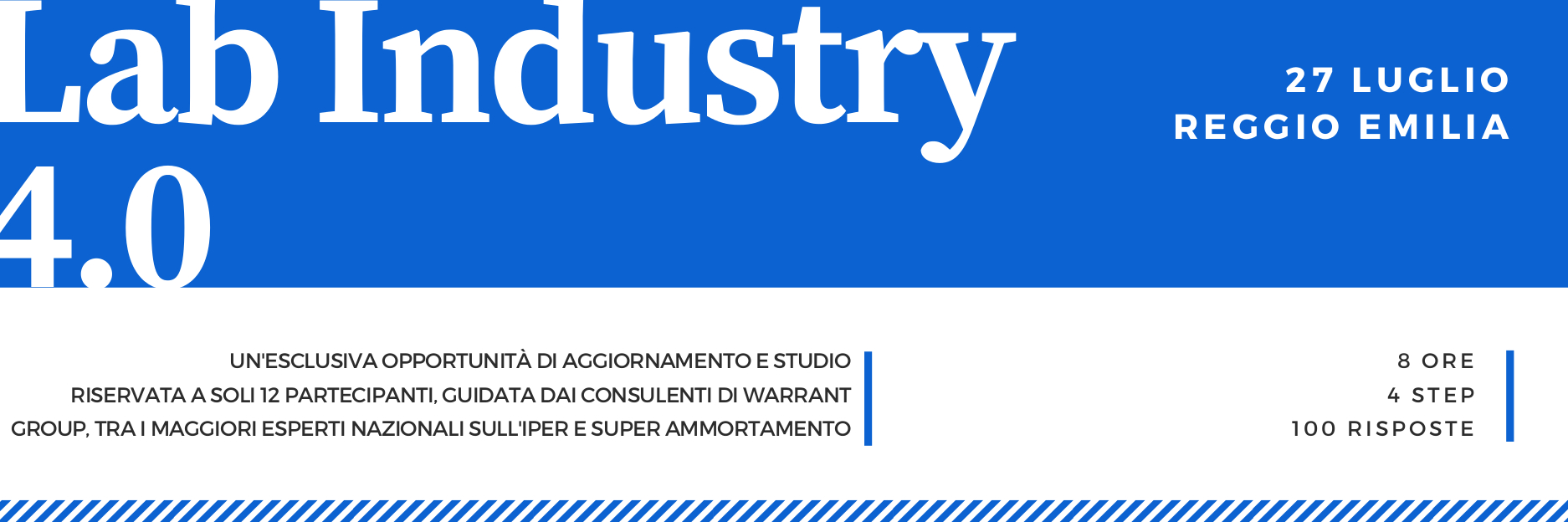 Per aiutare a cogliere tutte le opportunità offerte dal Piano Nazionale Industria 4.0, Warrantraining vi propone un Laboratorio di approfondimento e interpretazione tecnica e normativa del Piano – max 12 partecipanti – grazie al quale contestualizzerete e comprenderete a pieno le implicazioni concrete dell’iper e super ammortamento.