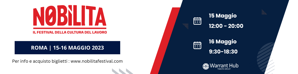 Se c’è un elemento comune a città, istituzioni e aziende, questo è il lavoro : l’unico elemento che permette alle persone di realizzarsi e di assumere una vera dignità nel contesto in cui operano, vivono, si relazionano con gli altri. Per questo è importante che in un festival dedicato al lavoro siano presenti tutti quegli attori che il lavoro lo vivono in prima persona: chi lo offre (gli imprenditori, lo Stato), chi lo svolge (i lavoratori), chi lo racconta (i giornalisti, gli intellettuali e i divulgatori di nuovi modelli culturali) affinché tutti comprendano i temi più attuali attraverso un ponte nuovo fra imprese, istituzioni e cittadini. Creare consapevolezza e cultura per ridurre i conflitti : generazionali, sociali, economici, di genere. Un dialogo in cui spiegare in maniera non banale la trasformazione che sta avvenendo nei luoghi di lavoro. Questo può avvenire solo presidiando spazi e pensieri non convenzionali in un territorio neutro dove si generano idee fuori dagli schemi, dove la condivisione di buone pratiche e competenze vengono messe a disposizione di tutti per diventare patrimonio comune. Alla sesta edizione del festival sono previsti incontri, dibattiti e talk di attualità per parlare del lavoro attraverso la voce di chi lo fa, chi lo dà e chi lo racconta. Warrant Hub partecipa come sponsor dell’iniziativa. Programma Roma, lunedì 15 maggio 2023 12.00: Senato della Repubblica | Sala Caduti di Nassyria | Conferenza stampa di lancio del festival. Per accrediti: [email protected] 17.00-20.00: Palazzo delle Esposizioni | Apertura ufficiale di Nobìlita (appuntamento riservato a Istituzioni, Stampa, Relatori, Soci FiordiRisorse e Sottoscrittori SenzaFiltro) | – Presentazione “Osservatorio Crisi aziendali” a cura di SenzaFiltro; intervengono: Presidio Whirlpool “Napoli non molla”, il regista Gianfranco Pannone e il Collettivo di Fabbrica – Lavoratori GKN Firenze. – Pasquale Tridico, Presidente INPS. Intervista e presentazione del suo libro “Il lavoro di oggi La pensione di domani” – Lezione-Spettacolo “OvviEtà”, di e con Enzo Memoli Roma, martedì 16 maggio 2023 | Acquario Romano 9.30 – Saluti di benvenuto 10.00 Frediano Finucci (La7) intervista la Ministra del Lavoro Marina Calderone (in definizione) 10.15 – JobX Marco Damilano | Giornalista | “Il lavoro, lo spiegone” 10.30/11.45 – panel 1: “ABBIAMO ANCORA VOGLIA DI LAVORARE?” | modera Frediano Finucci (Responsabile Economia Esteri del TG La7) Ospiti: Chiara Saraceno – Sociologa Riccardo Ruggeri – Editore, scrittore e giornalista Ivana Veronese – Segretaria confederale UIL Osvaldo Danzi – Esperto di Risorse Umane e Selezione del Personale, giornalista, editore di SenzaFiltro Marco Bentivogli – Coordinatore nazionale Base Italia Marco Lombardo – Senatore, esperto di politiche attive del lavoro 11.50 – JobX Lorenzo Gasparrini | Filosofo e autore | “Ma che c’entra il femminismo col mio lavoro?” 12.15/ 13.00 – Presentazione Indagine ADP sull’andamento del lavoro nel mondo Elena Brugnerotto riassume il panel della mattinata con gli sketch grafici 13.00-14.15 – Pausa 14.30/16.00 – panel 2: “DOVE STA ANDANDO IL LAVORO?” | modera Marta Cagnola (Radio24) – panel di discussione diviso in due parti 14.30/15.15 – prima parte: “I MODELLI SERVONO ANCORA?” Ospiti: Gaetano Pecoraro – Giornalista Le Iene Giorgia Ortu La Barbera – Psicologa e membro Comitato scientifico Fondazione Libellula Fausto Durante – Segretario CGIL Sardegna Marco Carlomagno – Segretario generale FLP Federazione Lavori Pubblici 15.15/16.00 – seconda parte: “NUOVE GEOGRAFIE, NUOVE ECONOMIE” Ospiti: Sandro Polci – Architetto e Soclologo del paesaggio Antonio Decaro – Sindaco di Bari e Presidente ANCI Stefano Cigarini – AD Dream Island, parco tematico a Mosca Sonia Malaspina – Responsabile HR Italia e Grecia Danone e autrice del libro “Il congedo originale” 16.00/16.20 – JobX Christian Iansante | Doppiatore e voce di Bradley Cooper | “Noi doppiatori, anzi turnisti” 16.20/18.00 | panel 3: “DALLA SCUOLA ALL’AZIENDA: TROPPA FORMAZIONE, ZERO LAVORO” – panel di discussione diviso in due parti 16.20/17.10 – prima parte: “LA SCUOLA CHE NON VEDIAMO”, modera Stefania Zolotti (Direttrice SenzaFiltro) Ospiti: Laura Fumagalli – AD MyEdu Alessandro Rosina – Economista, docente universitario e scrittore Beniamino Pagliaro – Giornalista, fondatore Good Morning Italia e autore del libro “Boomers contro Millennials Carlo Alberto Bisi – AD CRS Carriere Italia e Coach ICF (International Coach Federation) 17.10/18.00 – seconda parte: “L’INTELLIGENZA ARTIFICIALE CI FA MALE?”, modera Massimo Cerofolini (Rai Radio1) Ospiti: Nicoletta Prandi – Giornalista Radio Lombardia e autrice del libro “Immuni alla verità” Francesco Archidiacono – Fumettista Collettivo MeFu Lorenzo Ceccotti – Illustratore, Musicista e Fumettista Collettivo MeFu Giorgio Cuscito – Giornalista Limes e curatore di “L’intelligenza non è artificiale” 18.30 – Saluti e chiusura INFO E BIGLIETTI