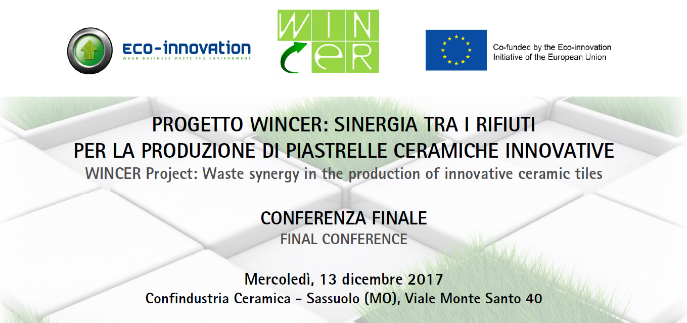 Il progetto europeo WINCER , sulla produzione di piastrelle ceramiche con materiale riciclato, giunge al termine. Alla conferenza di chiusura, in cui si parlerà di come si è svolto il progetto e dei risultati ottenuti, Warrant Group parteciperà alla tavola rotonda con l’ Ing. Massimo Rinaldi della European Funding Division .