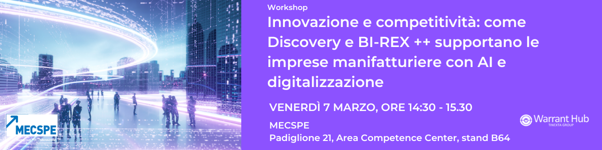 Workshop in fiera MECSPE – Innovazione e competitività: come Discovery e BI-REX ++ supportano le imprese manifatturiere con AI e digitalizzazione